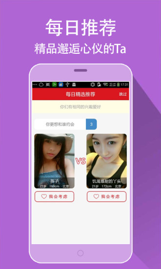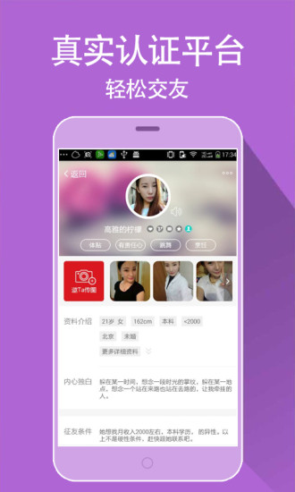 致力于打造专业的婚恋交友平台,备受广大单身男女青睐,每天在线用户行业领先。在线互邀,每个寂寞的夜晚找到Ta来陪伴,1分钟发现同城附近单身妹妹,3分钟成功交友,10分钟见面约会,一键注册,神速脱单,哥哥别害羞,赶紧来约会,把妹妹带回家!