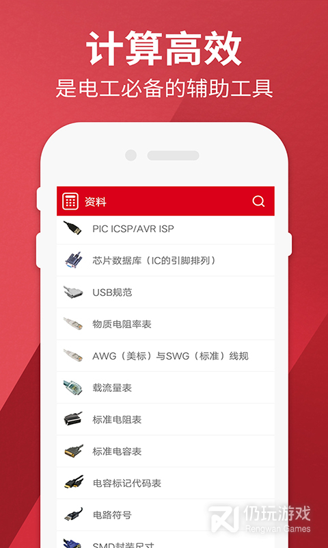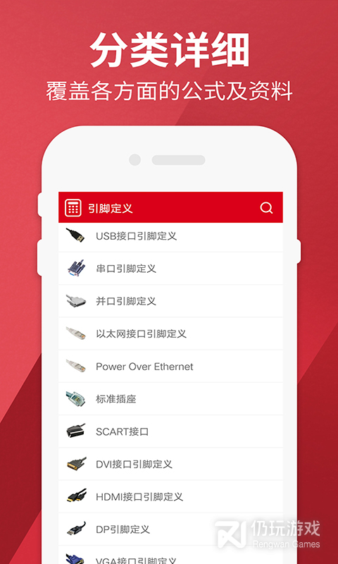 4、拥有全面的电气计算功能,如电动机、转换、引脚定义等,可分类查询;