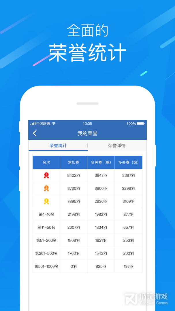 4、信息与赛事数据关联,全面的个人荣誉统计