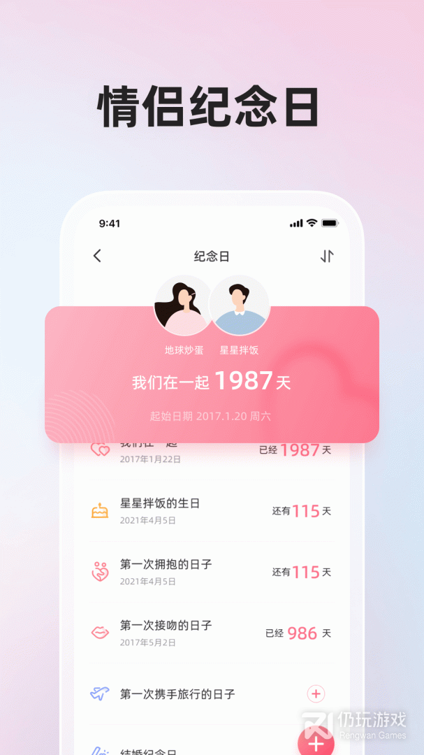 2、情侣纪念日:记录情侣间每一个值得纪念的日子