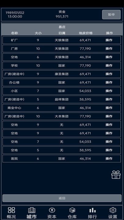 3、在游戏中您可以买卖地皮,采矿,生产,批发,零售,等一系列骚操作