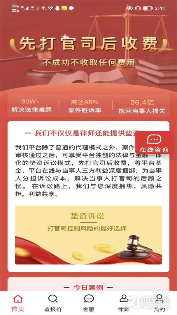 2、特色法律服务: 全风险代理 不胜诉不收费