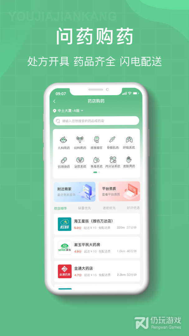 在线问诊开具处方,在线购药、覆盖周边药店、帮用户一站式购药、取药。