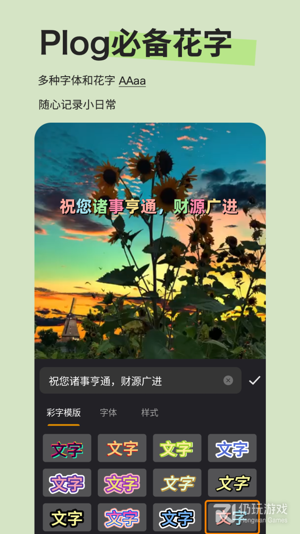 5.一键设置鲜艳明亮的字体颜色,符合各种照片。