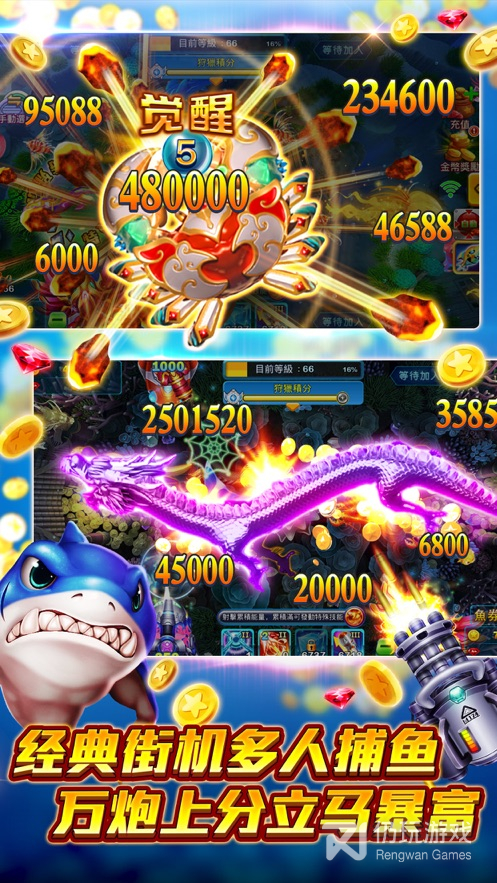 2、经典的火爆人气联机捕鱼游戏加上各具特色的技能,玩捕鱼也能玩出花样