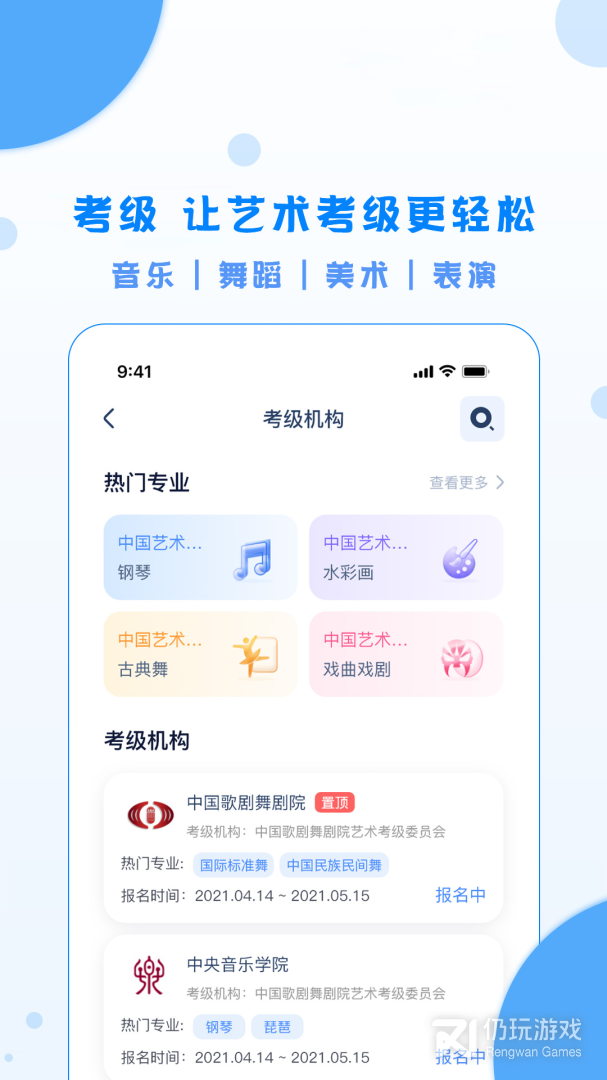 1、覆盖音乐、舞蹈、美术、表演考级全类目