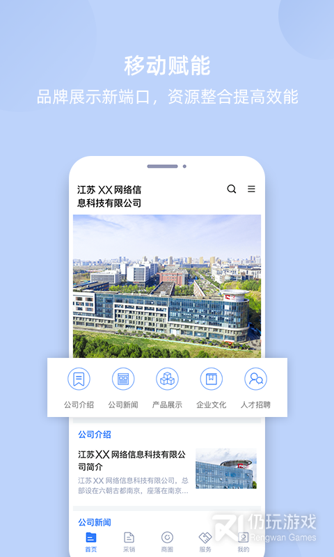 2、我的企业为所有入驻的企业搭建了一个只属于自己的平台,在这里企业主可以创建自己的公司页面,上传公司信息,在平台上详细的介绍公司的情况和人文情怀,进行产品展示,查看更多其他企业的新闻