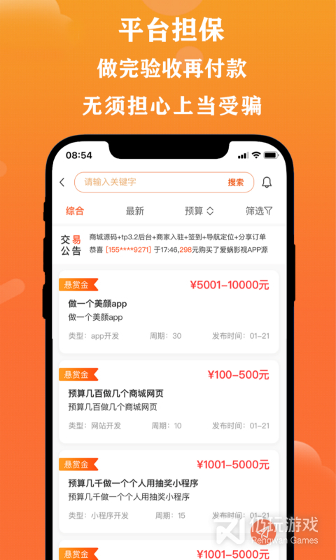2、平台担保交易,在此可以先验收开发公司做完的软件再支付费用;