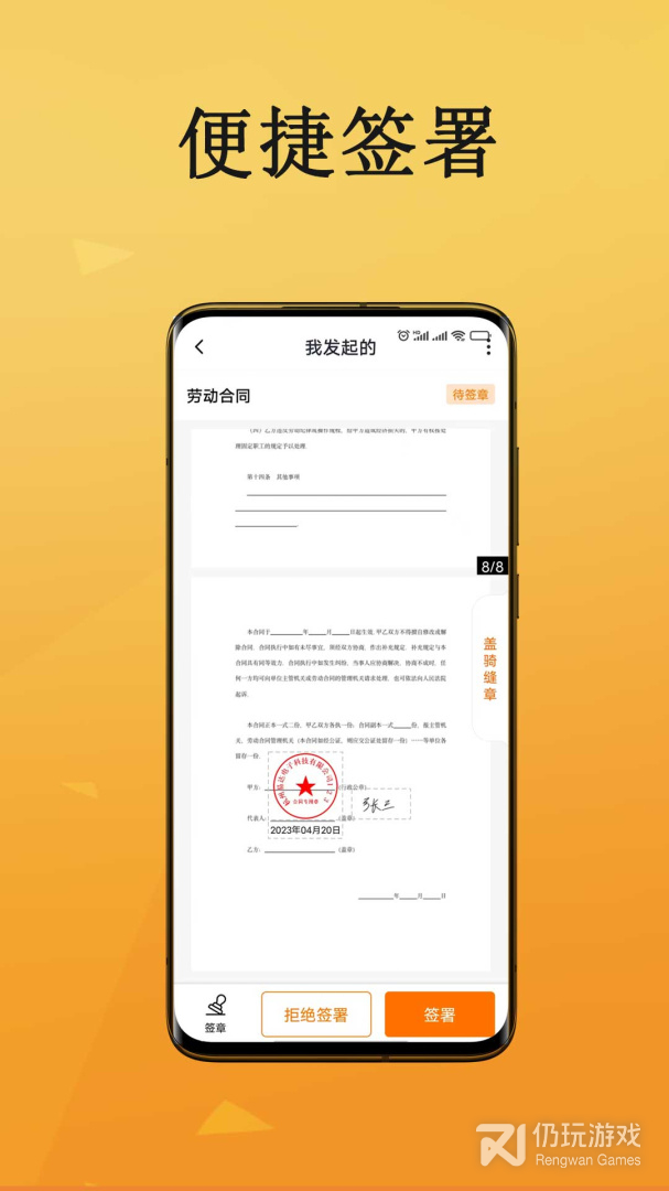 3、高效办公体验无比的容易简单,旨在为办公效率提升和纸质流程转型的企业提供全方位服务的应用软件。它支持多种文档格式的在线签名和加密,无需在传输过程中下载文档,就可以安全地完成签名操作,提供多种签章样式和定制功能,可根据用户的具体需求进行设置