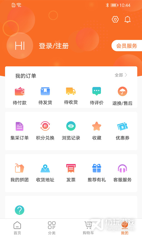 集采订单、积分兑换、浏览记录、收藏、优惠券