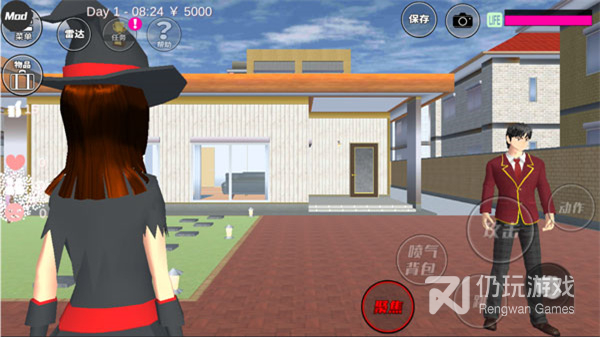 在游戏特定的时间完成令人心跳加速的刺激任务,还能使用校园的驾车、喷气背包功能。