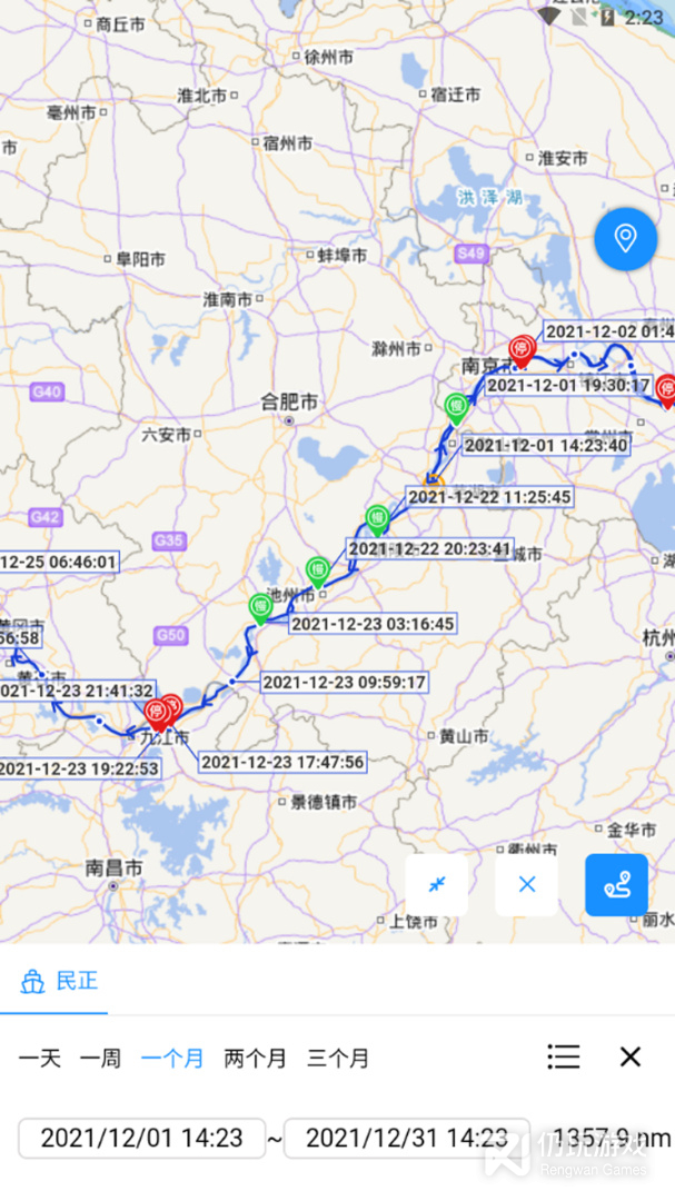 2.历史轨迹查询,用户可以选择时间段回放船舶航行轨迹,重现船舶航行过程;