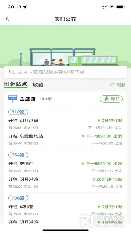 1、在软件中,会精准的为用户定位附近的站点信息,以及各类的车次内容都可以一目了然的在软件列表中查看到,帮助用户进行公交站点的查询