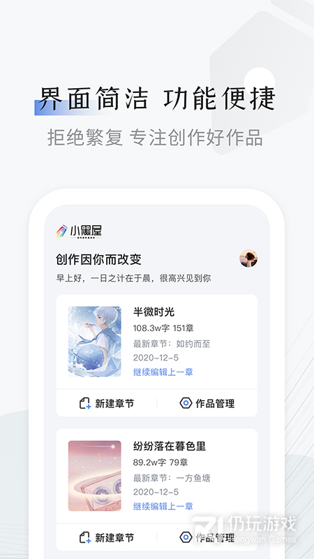 2、帮助广大作家在 手机上也能更加舒适的进行创作.简洁的软件界面,舒适的写作设置,还有大量文学模板可以供用户进行使用
