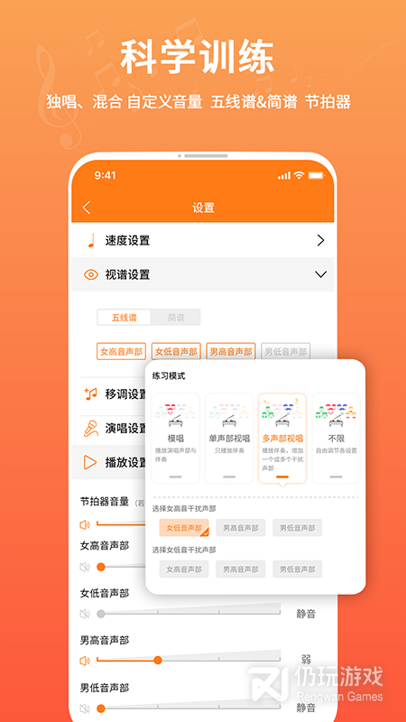 1、喜欢唱歌的小伙伴们,在平时都会练歌以此来追求更大的突破,而合唱蛙最新版就是专门负责合唱学习的的软件,教会大家更多的唱歌知识。在平台上用户们能够通过软件轻松地进行合唱学习,不管是音准,还是乐谱都能帮助大家进行纠正,更是有AI评分功能,让你清晰了解自己的薄弱点,就能找准方面更好的练习