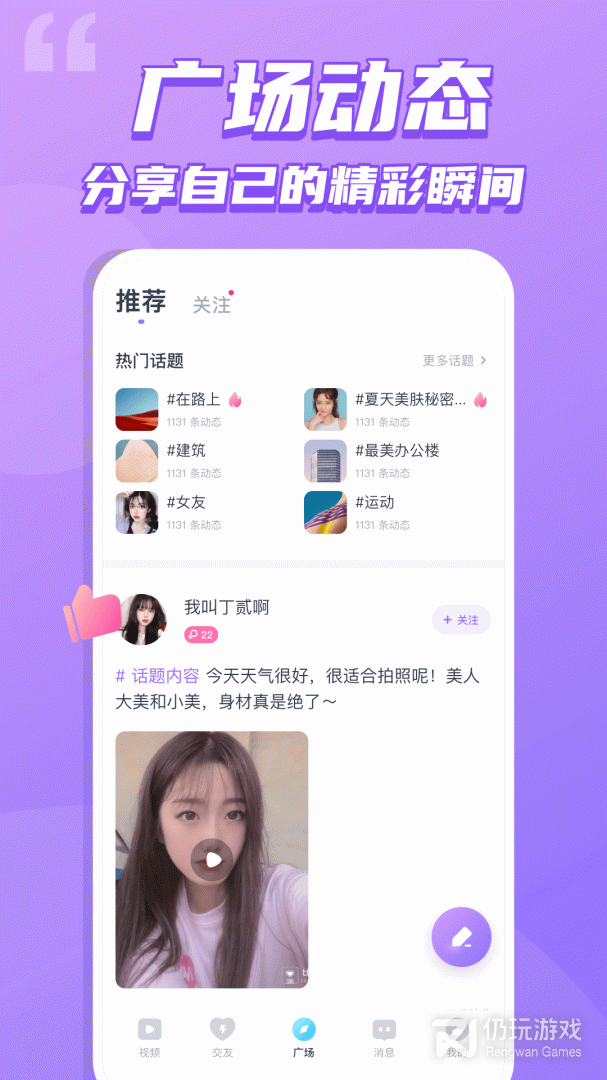 3、新话题及时更新发布,是广大用户必备的社交工具,脱单更轻松