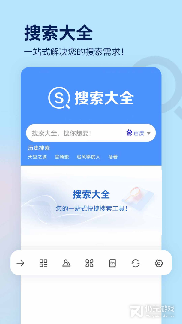 一款搜索聚合软件,将多种搜索工具聚合再浏览器中,各种搜索引擎可快速切换,简单方便,满足多种搜索需求。集合百度,搜狗,360,神马,头条,必应,雅虎,谷歌等搜索引擎。