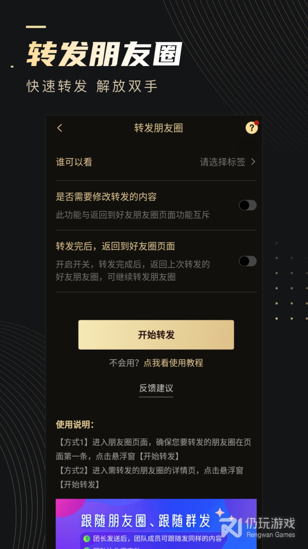 1、微商助手基于谷歌安卓系统的官方功能开发,在微信服务基础上,帮助用户更方便、快速地使用微信的功能,为阅读内容、触屏操作、声音控制等方面有困难的人群提供全面帮助,自动转发节假日祝福语、图片、文章、小程序