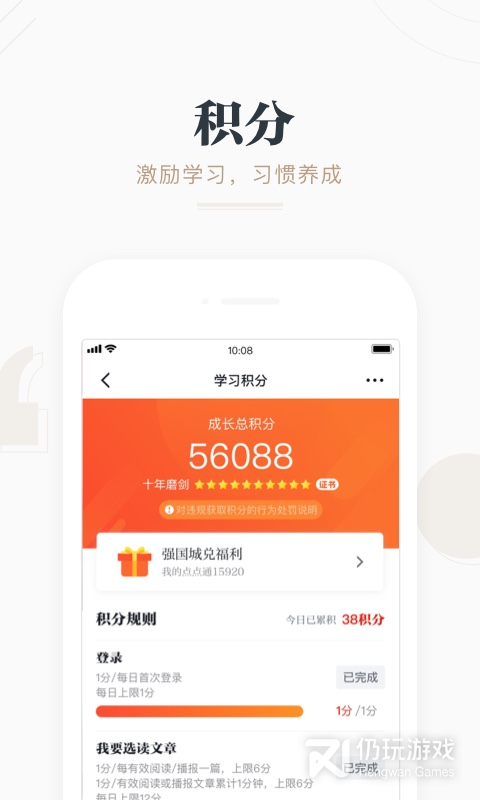 首先如何获得积分,用户通过在学习强国上完成学习行为(登录、阅读文章、观看