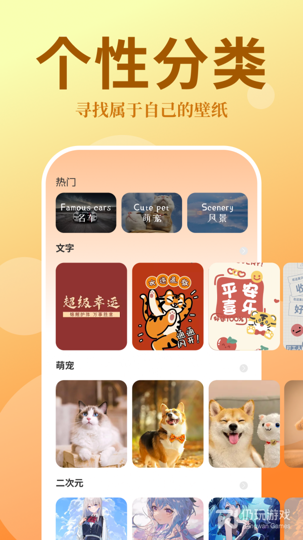 2、该软件为用户提供了海量好看的壁纸资源,包括了各种动态壁纸和静态壁纸,以及涵盖了动漫、人物、风景、萌宠等各个种类,在这里大家可以随时选择自己喜欢的壁纸进行使用,以此来让大家的手机桌面更加丰富