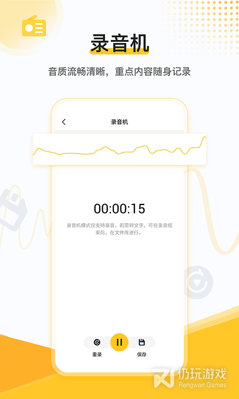 2、致力帮助用户轻松记录录音内容。软件可以在线进行智能转换成文字,做到精准识别,从而把帮助用户随时保存转换内容,此外还可以调节音频内容转换。软件拥有音频转文字、录音机、视频转音频、音频剪辑等功能,用户可以根据自己的需求选择