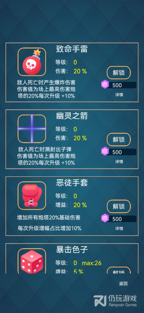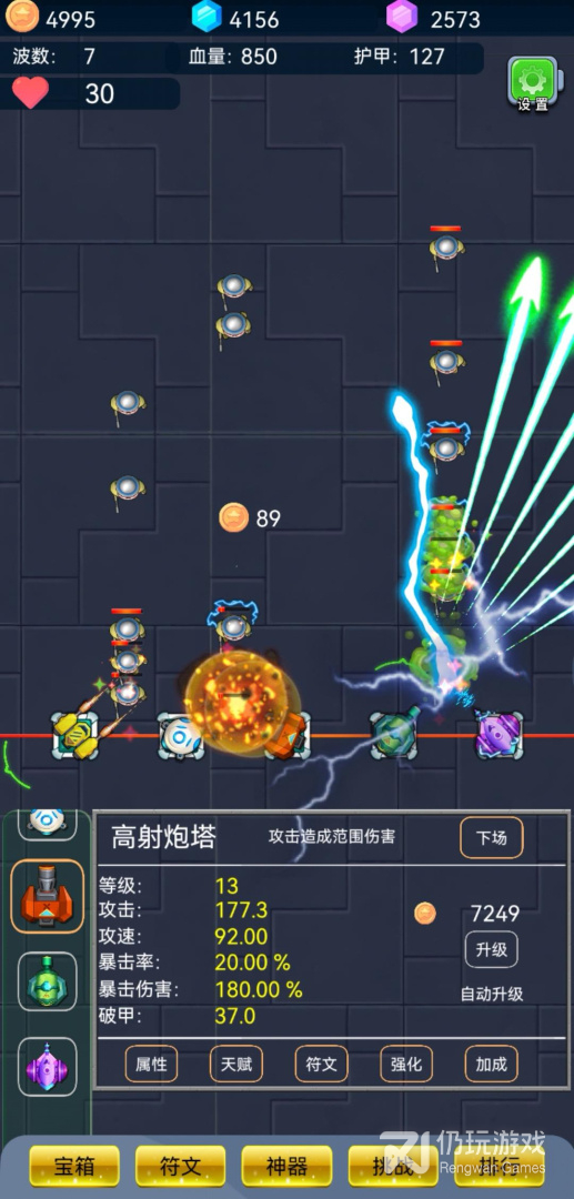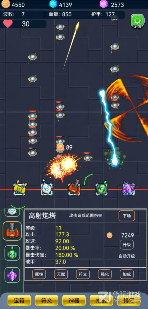 3、玩家可以通过游戏内的升级系统提升防御塔和武器的性能。