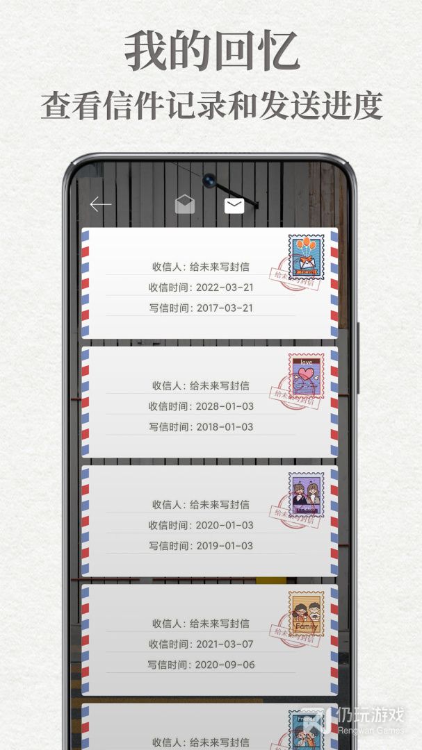 3、随时以电子邮件的形式进行为未来的你进行发送信件,而且还可以让老照片一键封存