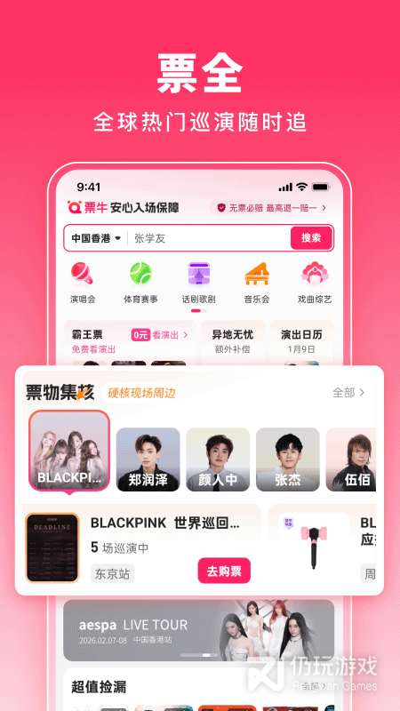 票牛APP专注于各类演出赛事、旅游景点等门票销售。可以购买各类演唱会门票(周杰伦、刘德华、林俊杰、陈奕迅、张学友、五月天等)、各类景点门票(游乐场、动植物园、旅游演艺、山水湖泊等)、各类娱乐门票(滑雪、温泉、漂流、游轮)、各类赛事门票(拳击、CBA篮球、中超足球、格斗、赛车、高尔夫、台球等)儿童亲子、各类展览、各类娱乐演出活动等门票。