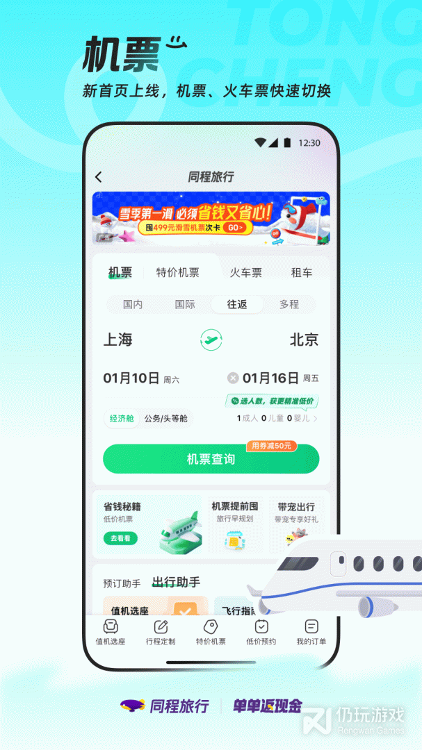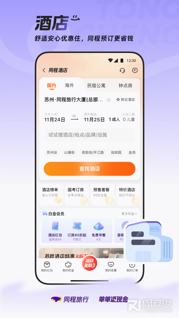 4. 服务保障:“同程旅游”,致力于为您提供一站式便携旅行服务