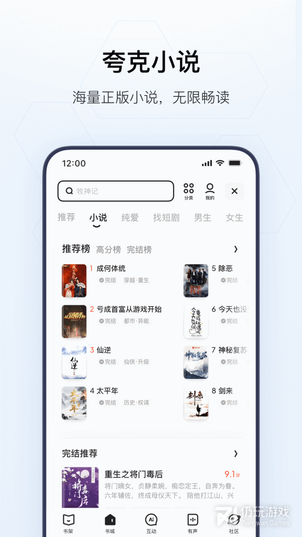 【小说】科幻言情,仙侠穿越,各类小说让独具个性的你,总能找到一本心动的书。更有AI朗读模式,把经典读给你听。
