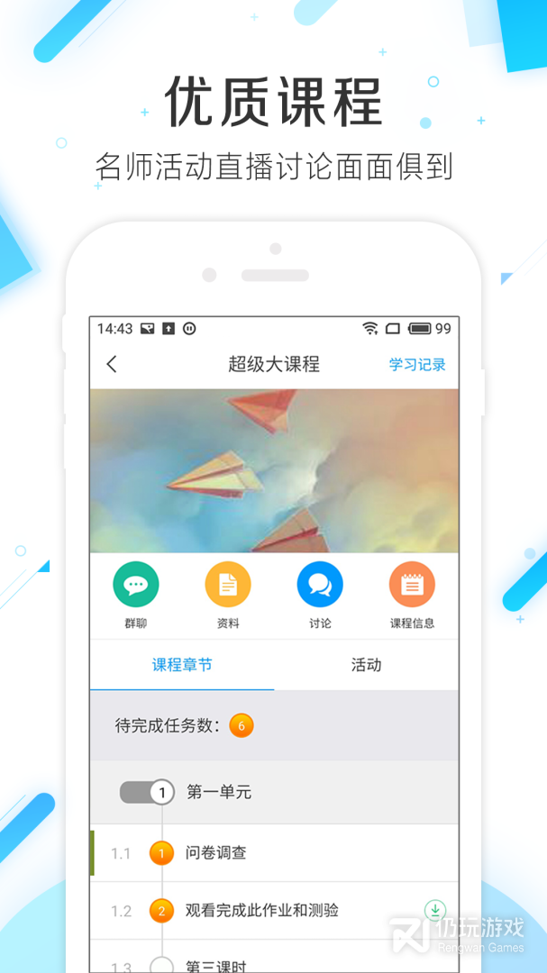 2、学习通是一款非常专业的移动学习的平台。学习通拥有着海量的图书资源和国内外知名的文献资料,用户可以自助完成这些图书资料的借阅与查询,同时还有学校专业的学习课程可供用户的浏览,让用户随意可以查到自己所需要的学习资料