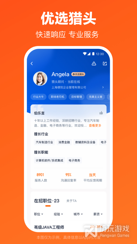 1、最高端、最专业的社交招聘应用,每天为您智能推荐职位,随时与猎头沟通,帮助您在职场更成功。