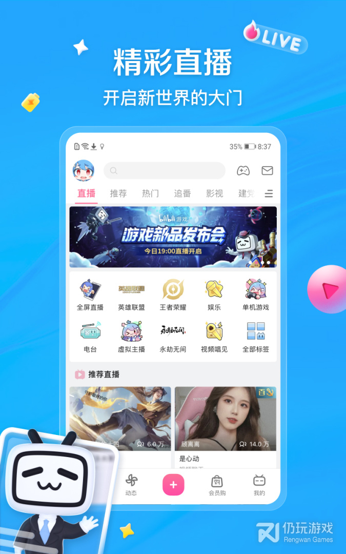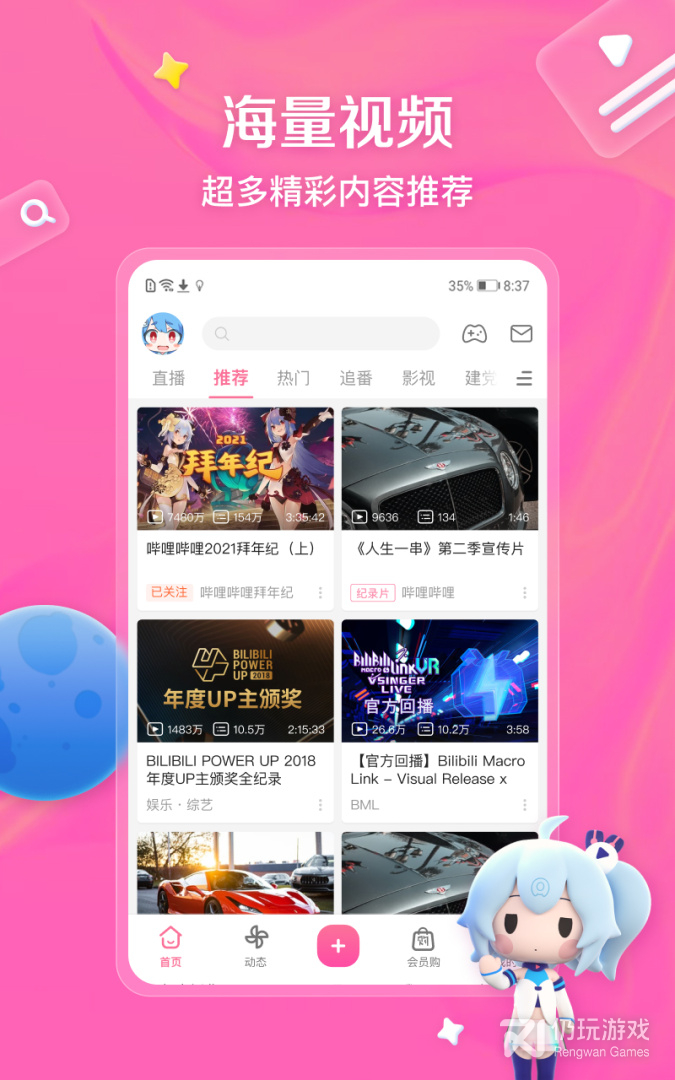 哔哩哔哩是一款非常热门的弹幕视频社交app,这款APP当中汇聚了各种要素,有着各种UP主剪辑的视频,有着不同的影视剧和电影资源,日漫国漫等二次元动漫的版权,还有着不同的直播内容等等,可以满足各类用户的各种需求,最精彩的弹幕功能,可以和不同的用户进行交流。