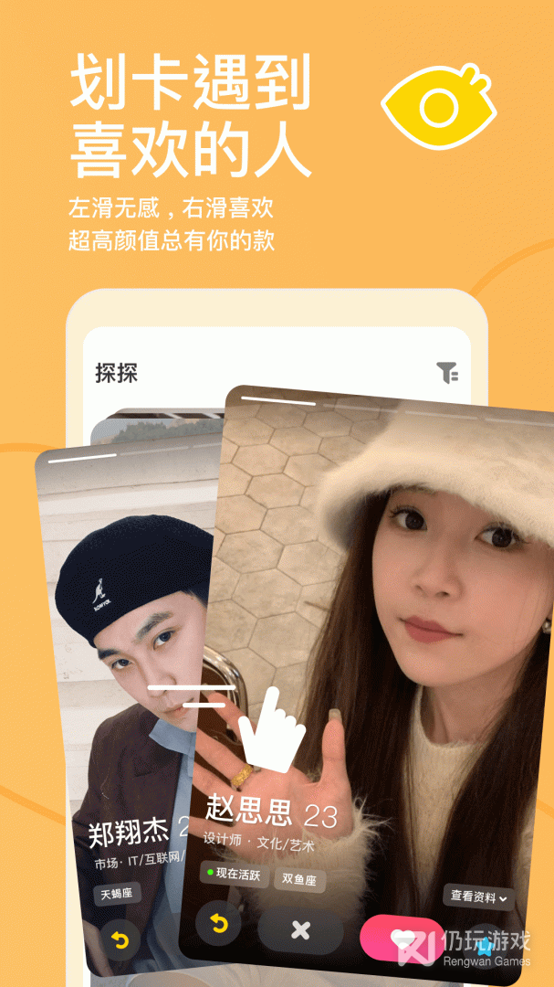 【简单】左滑无感、右滑喜欢,互相喜欢即配对聊天