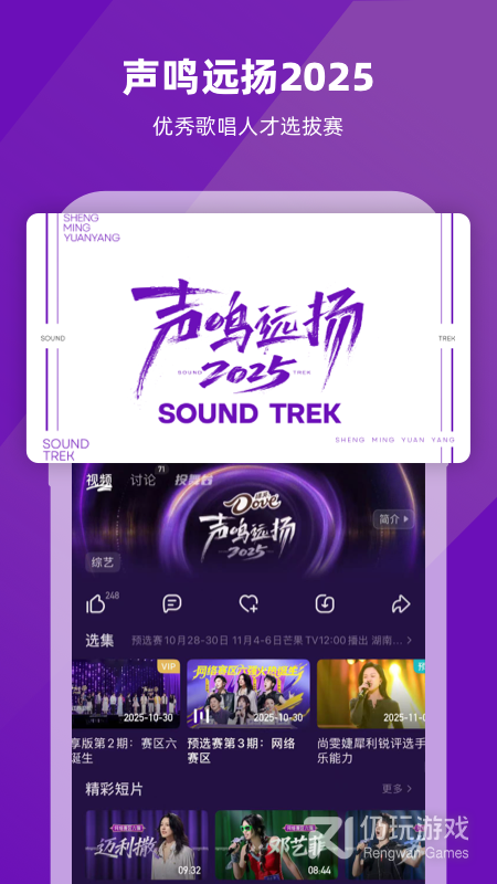 芒果tvapp是来自湖南卫视芒果tv官方app。这款芒果tvapp可24小时热门节目连续播放,节假日大型节目提供360度全景直播,你想看的独播秘密都在芒果tv这里。热门综艺、最新电视剧,还有各种湖南卫视独播内容,芒果tv这里全放送。独家提供湖南卫视所有栏目高清视频直播点播,并为用户提供各类热门电影、电视剧、综艺、动漫、音乐、娱乐等内容。芒果游戏是芒果tv旗下网页游戏平台。