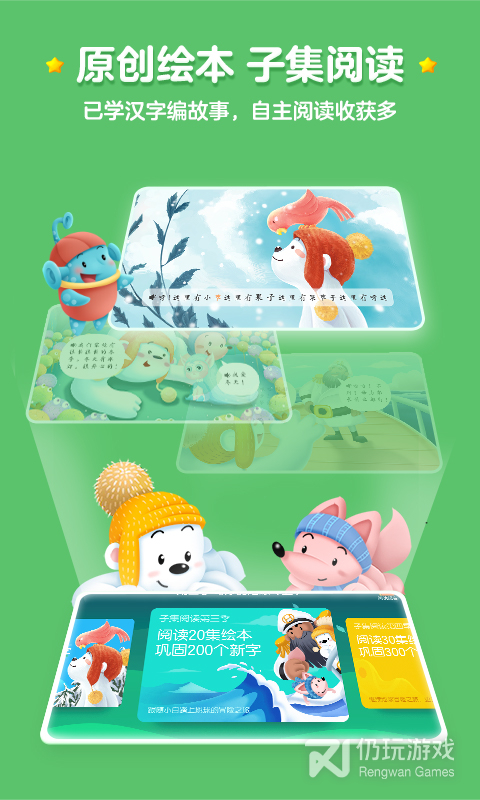 6、分级阅读:遵循子集扩展理念,科学分级,原创故事,持续更新,打造专业严谨、更适合学龄前儿童的中文分级阅读识字体系