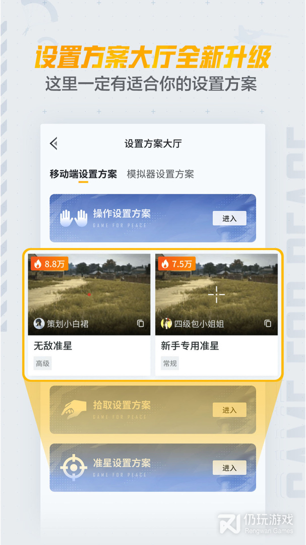 和平营地拥有超全测试中的玩法让用户抢先体验,软件支持战局、攻略、配置分享,在这里你可以看到大神主播的键位设置让你可以更加轻松地打中敌人,还有视频攻略介绍为你全方面介绍游戏枪支跑点信息大大增加了每个用户的吃鸡概率。