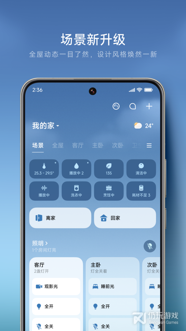 2、家庭房间,分组管理,高效便捷,常用宫格,自由设置,快捷卡片,拓展丰富,家庭状态,室内室外环境信息,一目了然,特色小米旗下精品生活电商平台,随时轻松爆品