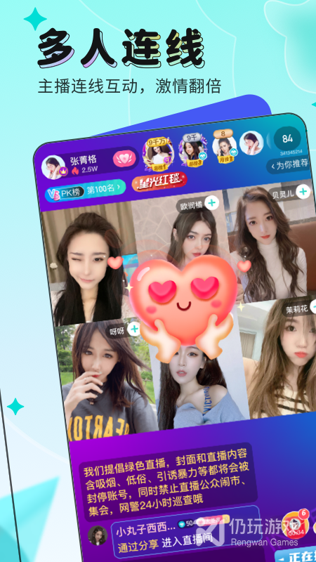 3、映客直播是一款全民手机直播平台,映客直播内容更加的丰富、全新首页更加智能优化。这款app上有多个直播间让你随意挑选,你还可以和主播进行pk比赛,各种新奇的玩法让你意想不到,还有各种直播小游戏等你来玩,喜欢的话,快来下载吧