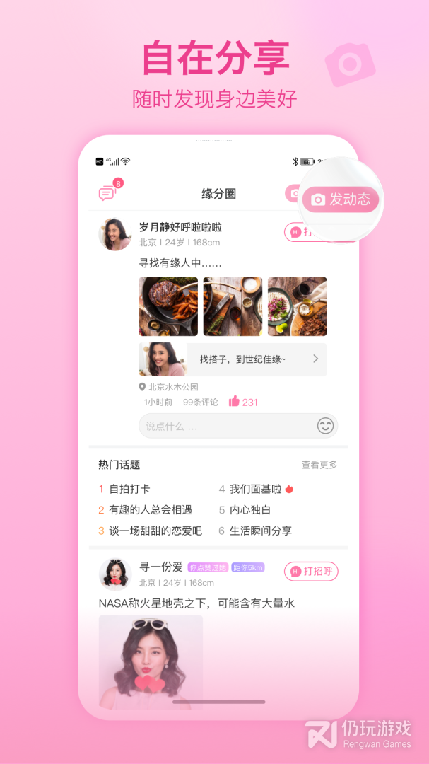 【缘分圈】发布动态遇见附近的ta,彰显你的个人风采,让你在人海中闪亮绽放