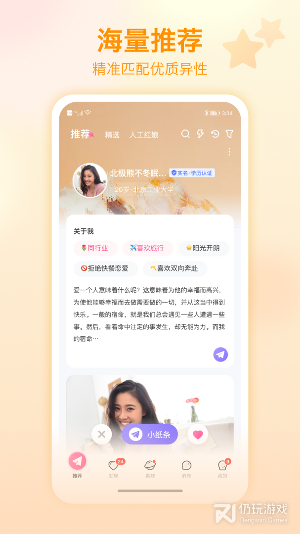 4、世纪佳缘是一款婚恋交友软件,刚刚去世纪佳缘下载一个官方包的时候,发现需要注册才能下载,无奈下载了一个,然后就进去里面逛了一圈。小编谈爱的冲动又一下子被勾出来了额,没妹子的孩子伤不起