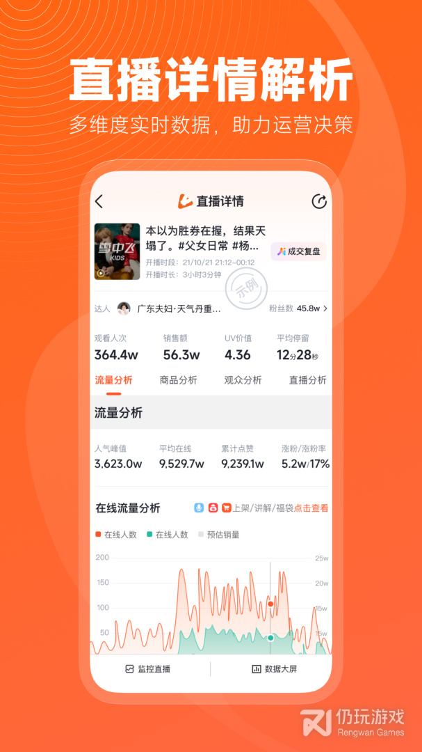 -依托专业的大数据挖掘与分析能力,构建多维数据,提供抖音直播&短视频直播电商带货数据。为网红达人淘宝主播、MCN机构、抖店抖音小店淘宝卖家阿里巴巴1688飞瓜用户提供短视频直播电商带货联盟深度整合一站式数据解决方案。