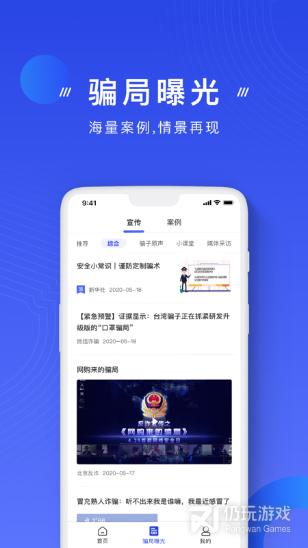 第七个功能是学习功能,它集成了各式各样最新的诈骗案例,我们可以多方面详细了解骗局,比如说冒充熟人,冒充客服、冒充黑社会、兼职刷单、假绑架等等。