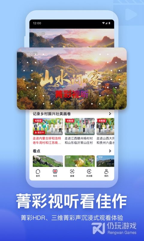 央视频版是一款非常权威的官方的视频综合性平台,这里有着各种热门的版块:短视频、直播、影视剧、体育赛事、官方新闻、生活资讯等等,囊括了人民生活的方方面面,让用户们能够快速准确的了解自己想要的信息,打造出最为权威和最有品质的强大ip。