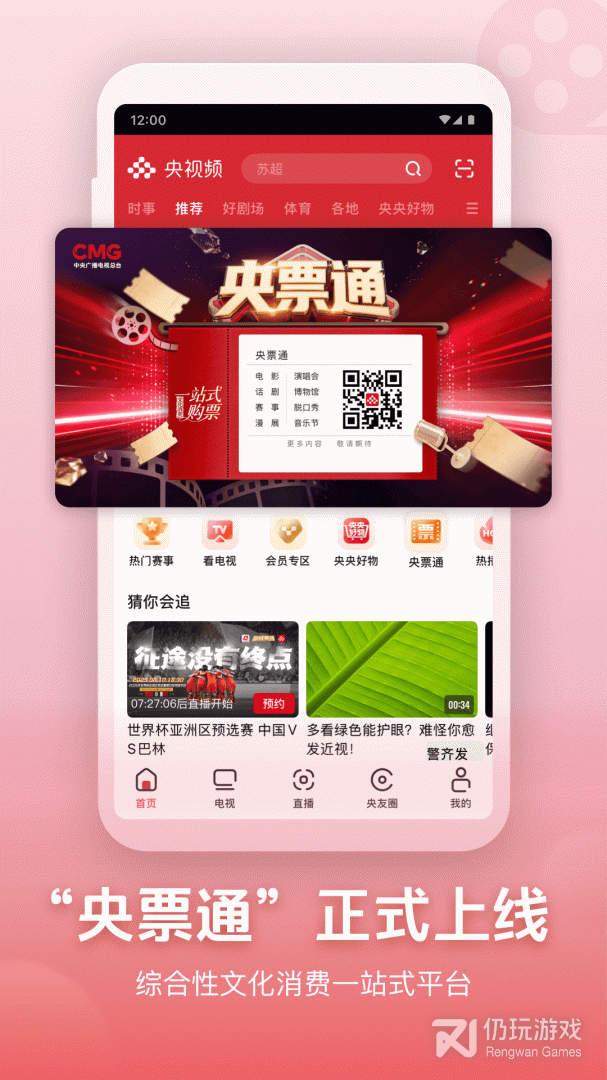 1、女足亚洲杯、CBA、NBA、五大联赛火热进行中!锁定央视频,让我们共同期待。