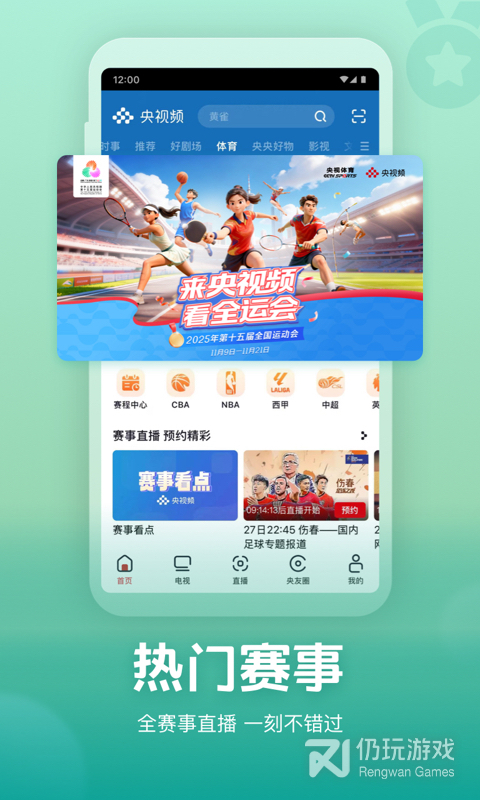 1、全运会中超五大联赛火热进行中!锁定央视频,让我们共同期待。