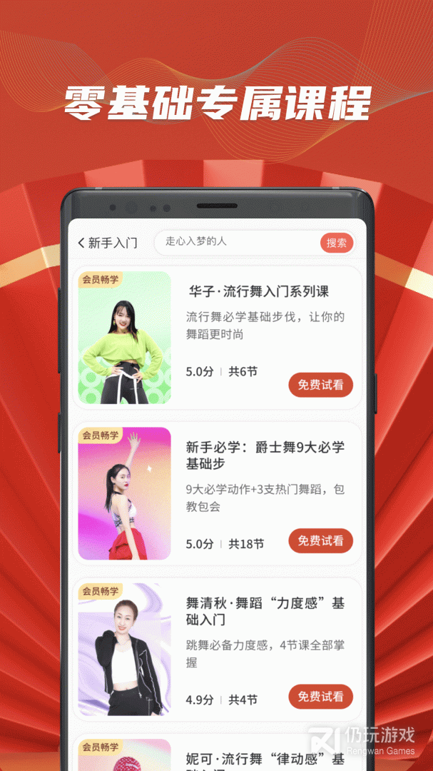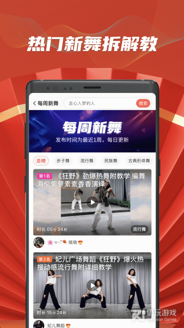 每首热歌均有广场舞、广爵舞、弹跳舞、国风舞等不同风格原创编舞,可按喜欢的风格、难度挑选学习。