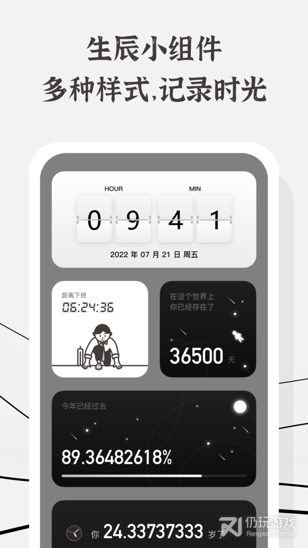 2、《生辰》是一款可看到你还能活多久的软件。你能在这里预测自己能活到多少岁,然后软件就会给你一个精准的倒计时,看着自己的生命每秒都在流失,总是能让人多出许多感触。有需要的就来下载吧~