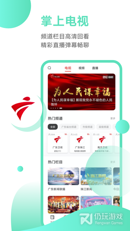 广东广播电视台倾力打造新闻资讯客户端。以“新闻+政务+服务”为理念,打造特色“联播频道”、 “广东民声热线”、 “珠江云”模块,汇聚全省21个地市、57个县级区域新闻与政务服务;是广东民声热线网络问政评分的唯一渠道;是广东新闻联播的官方互联网宣传阵地。
