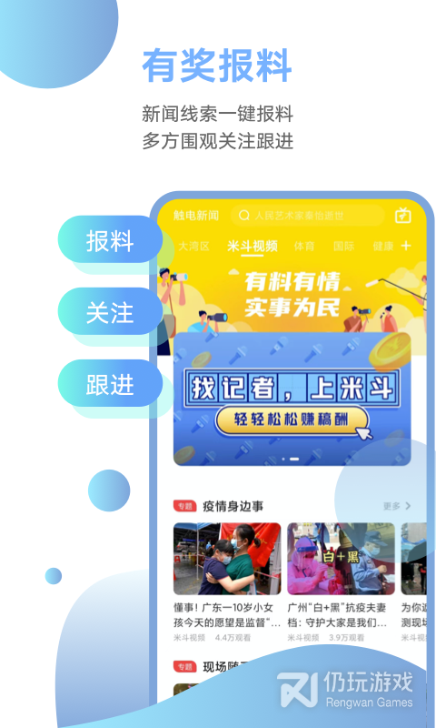在新媒体的不断崛起之下,报纸和电视等新闻途径日渐没落。触电新闻就是广东省广播电台顺应形势而推出的新闻软件,在这里用户不仅可以观看最新的新闻电视节目,还能根据你的需求来为你推荐你感兴趣的内容。